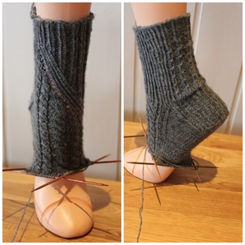 Disse har jeg lyst og strikke igjen i et annet garn. Jeg prøvde og ta opp hælmasker på en ny måte(her, hvis noen er nyfiken)på den ena sokken og “vanligt” på den andre. Kunne ikke se noen forskjell, da fortsetter jeg bare på den vanlige måten. Disse blir till meg , noe må jeg beholde selv.